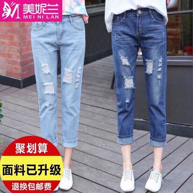 Quần bò nữ rách ống suông free ship