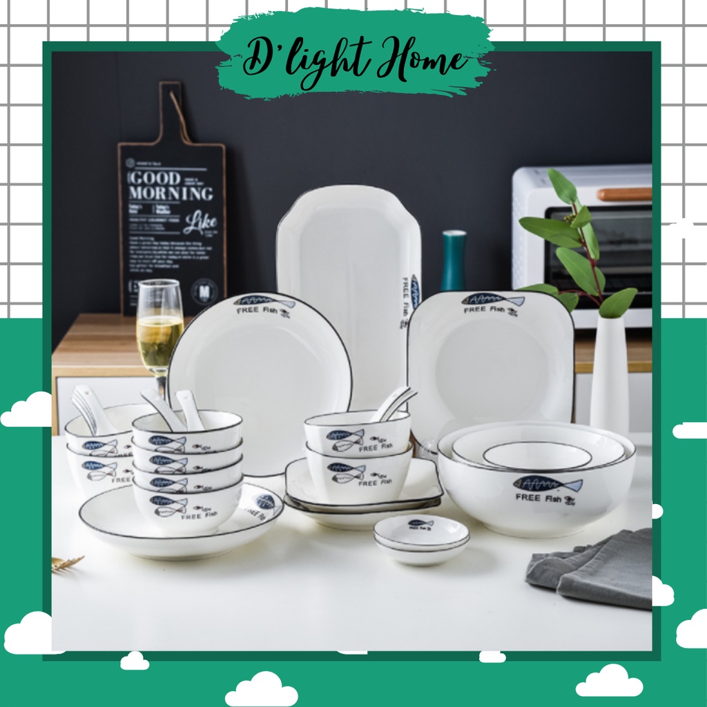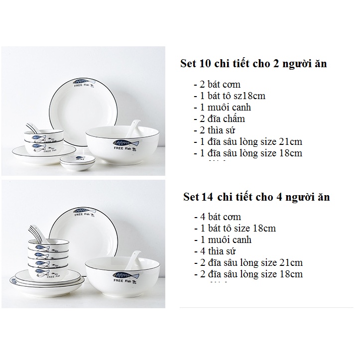 [RẺ VÔ ĐỊCH] [FREESHIP + TẶNG MÃ 100K] Bộ bát đĩa cá FREE FISH 38 chi tiết bằng sứ cao cấp free ship